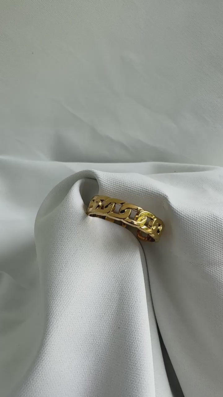 Elevate your everyday elegance with the Loopline Band Ring. This minimalist piece features a sleek, interlocking design that adds a touch of sophistication to any ensemble. Whether worn alone or stacked with other rings, it offers a versatile and timeless addition to your jewelry collection.